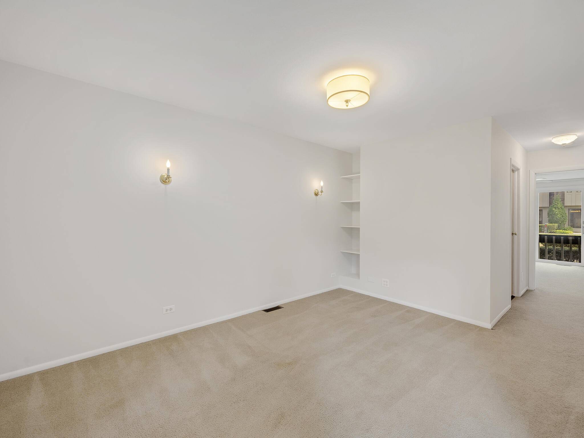 Bright living room opens to private patio